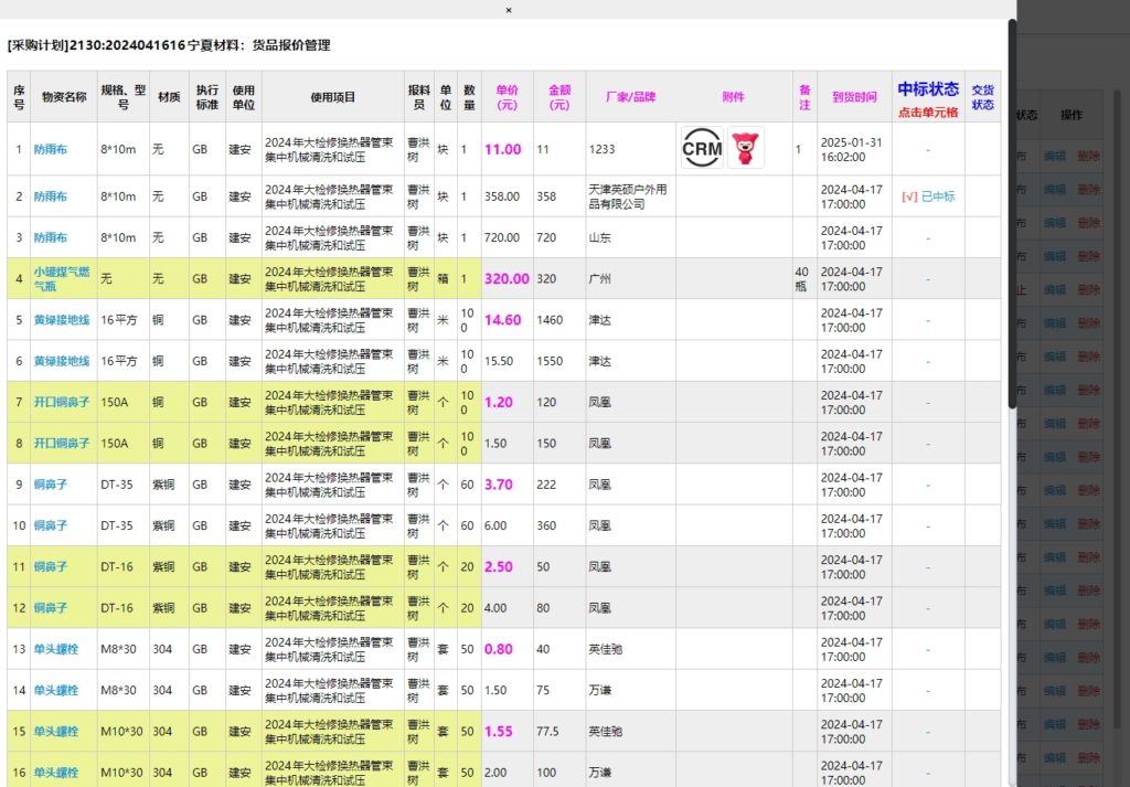 – Purchaser: Publish purchase plan, bind goods, designate quotable suppliers, view quotations, and operate the winning bid.